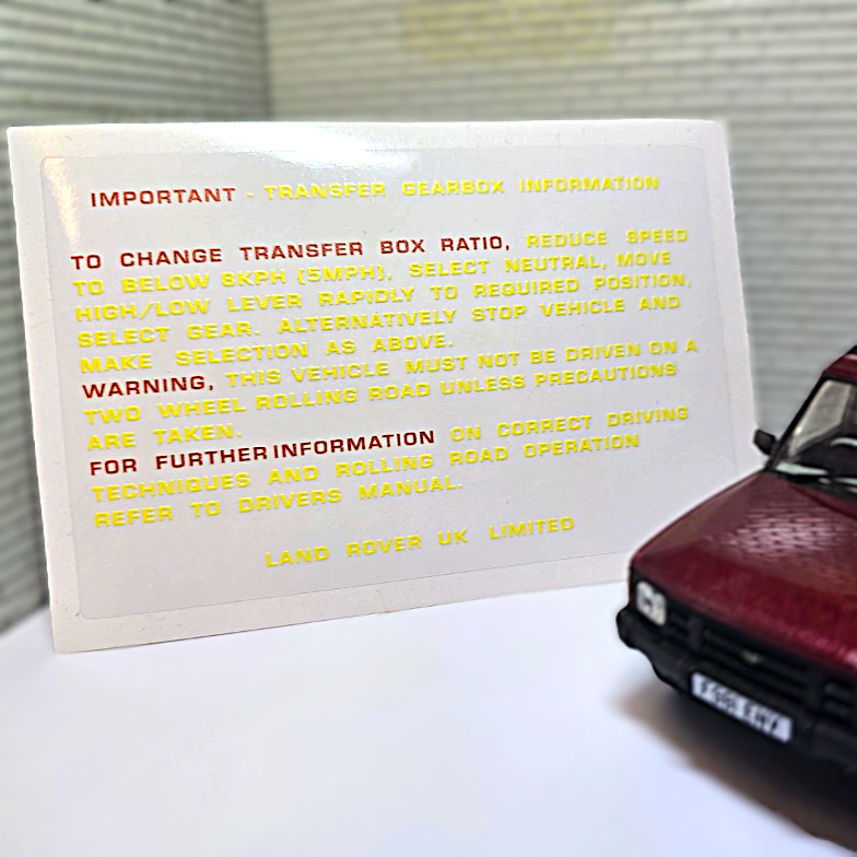 Early Discovery 1 V8 & 200TDi Transfer Gearbox Information Warning Decal Manual Transmission Box